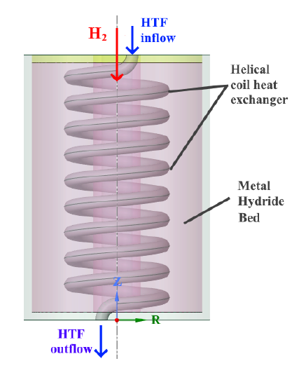2. to conduct a numerical simulation of the heat transfer and hydrogen absorption/desorption process in a metal hydride tank with an accompanying thermal management system.