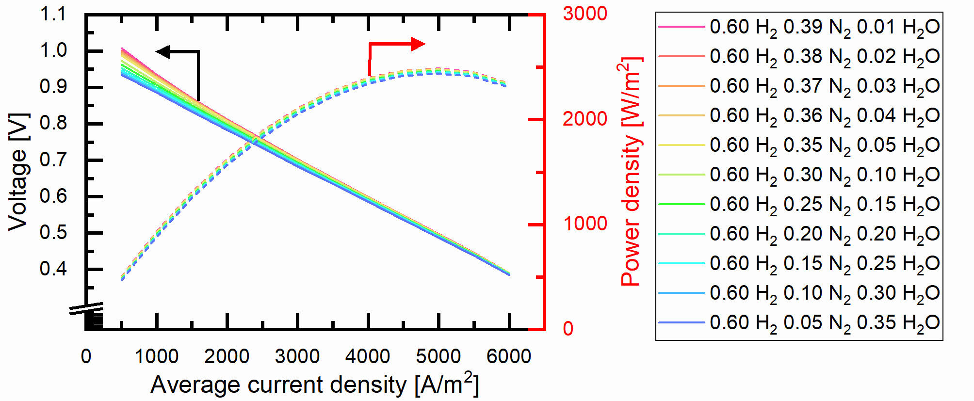 3. The experimental result was taken from a 6-cells stack. However, only a single-cell analysis is performed in the numerical analysis due to time constraints.