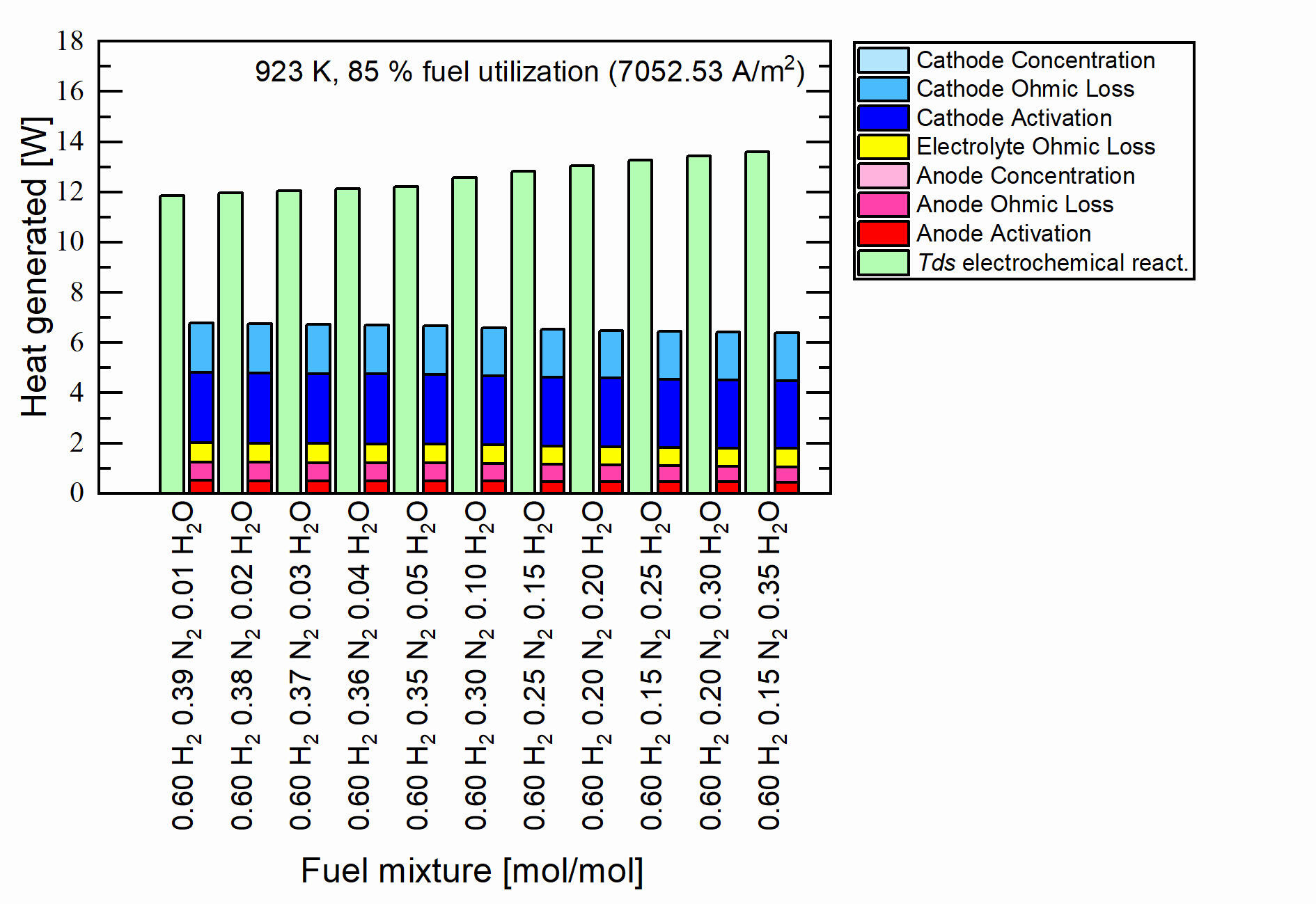 Numerical analysis on the effect of H2-N2-H2O fuel mixture toward cell performance using a quasi-3-dimensional solid oxide fuel cell model