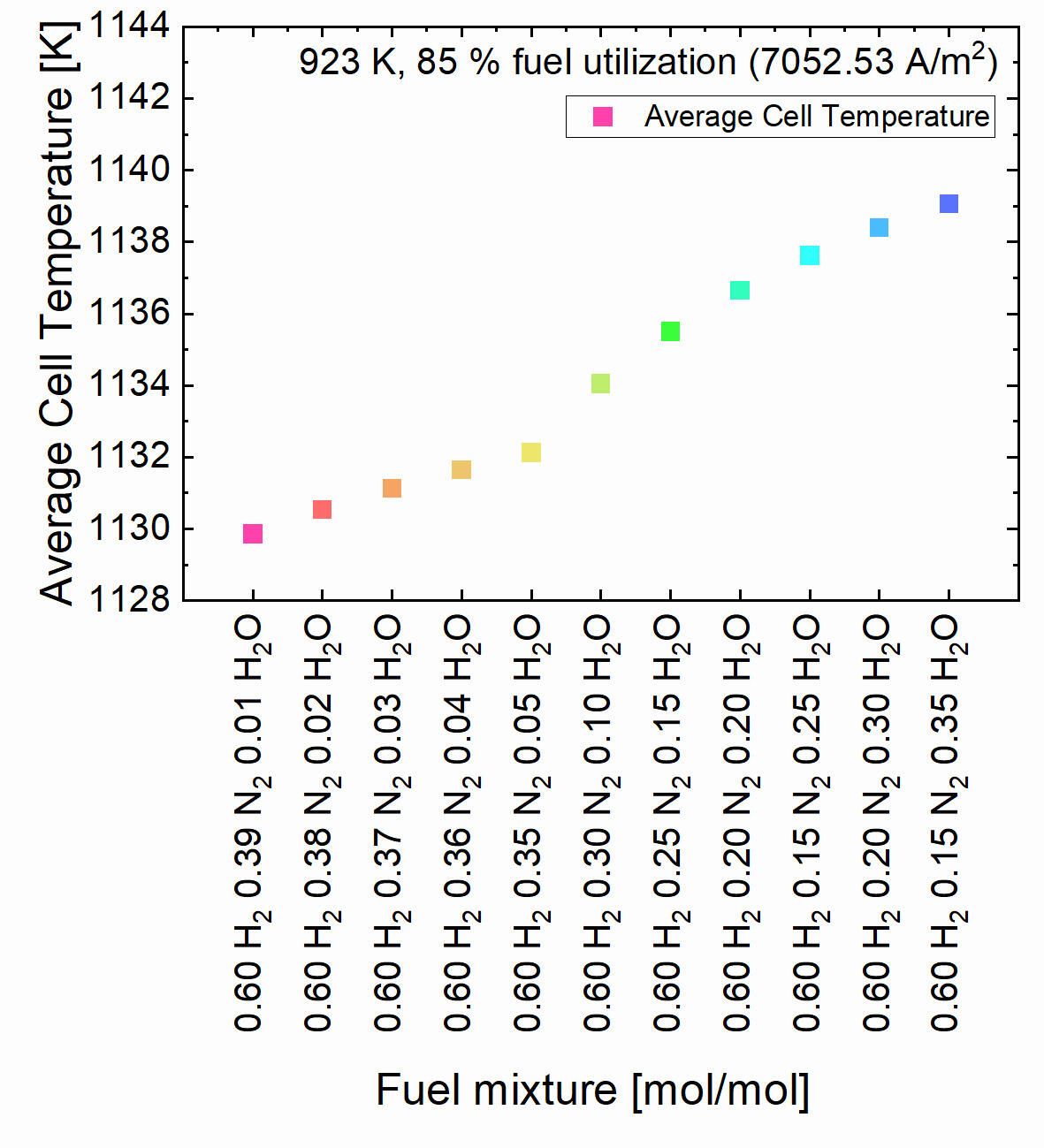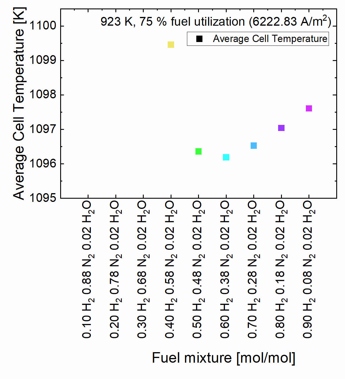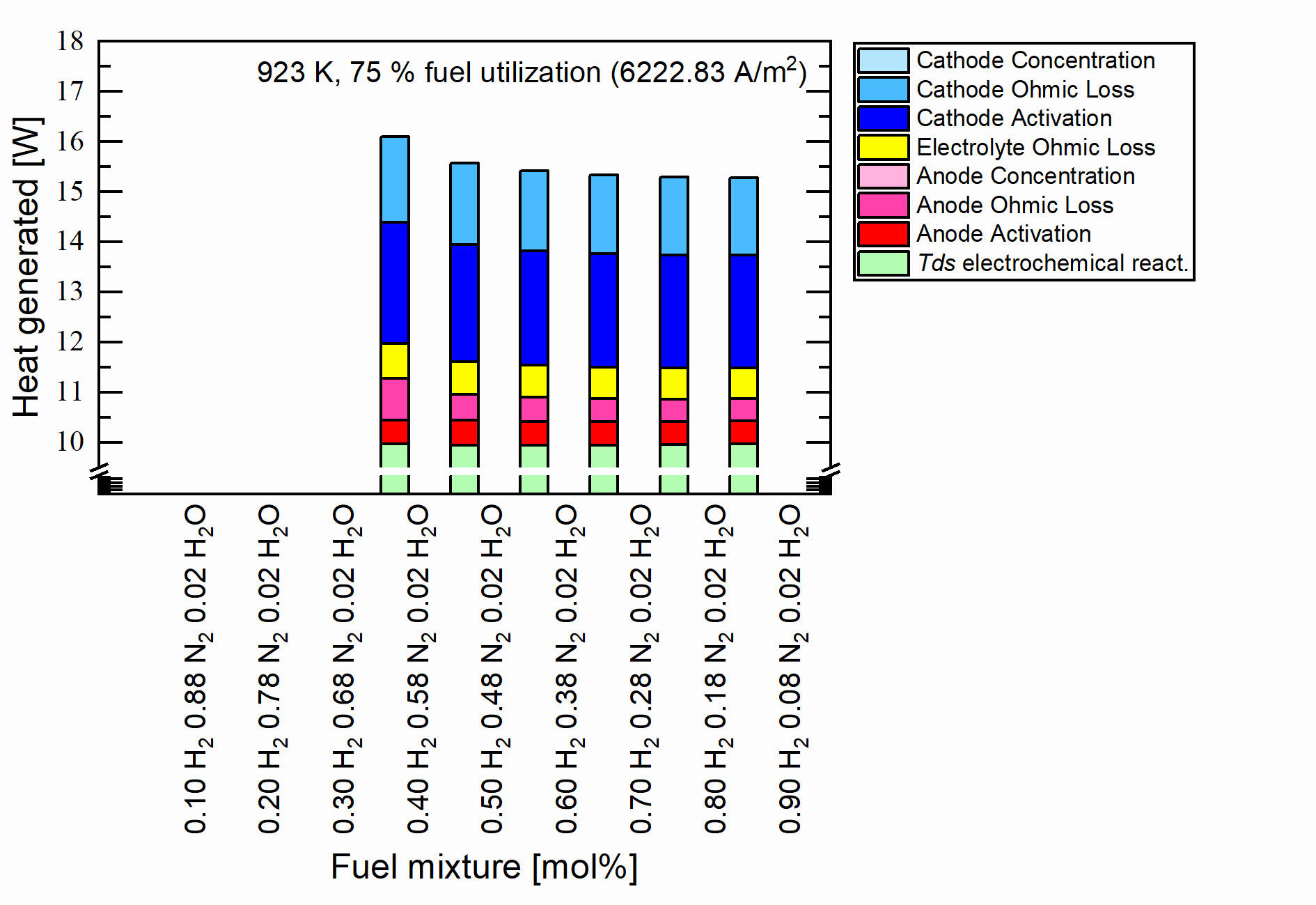 3. The operating temperature is 973 K which is within the operation temperature range of an IT-SOFC.