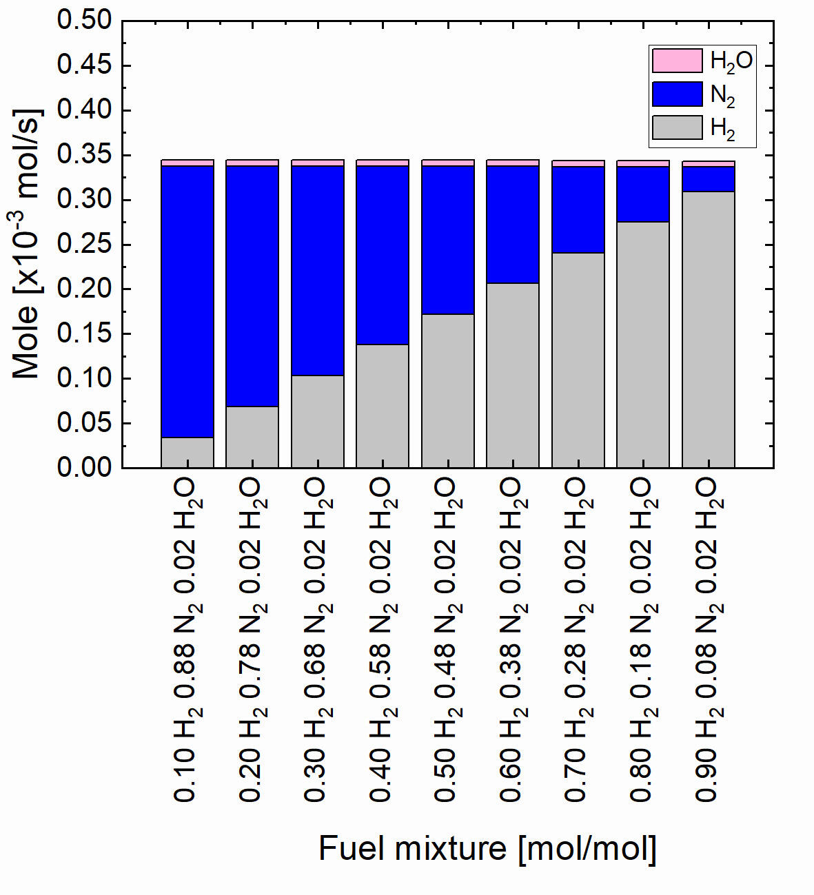 Hydrogen is the main fuel for a solid oxide fuel cell. For safety reasons, the supplied fuel is humidified to reduce the risk of explosion. Different mixtures of fuel affected the partial pressure of hydrogen fuel that is being supplied to the cell, further influencing the performance of a cell. This study aims to conduct a numerical analysis of the effect of a fuel mixture of hydrogen, nitrogen and steam on cell performance using the available quasi-3-dimensional solid oxide fuel cell model.
