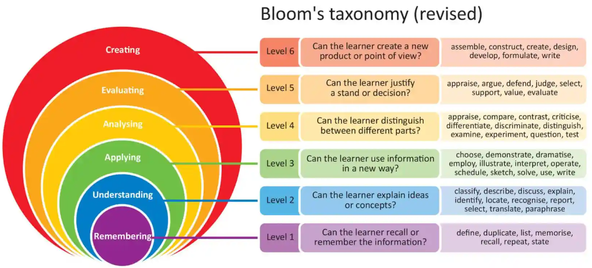 The COs are developed based on the learning domains as expressed by Bloom's taxonomy, which can be divided into three domains: cognitive, psychomotor, and affective. The revised version of Bloom's taxonomy divided the levels of learning as follows: