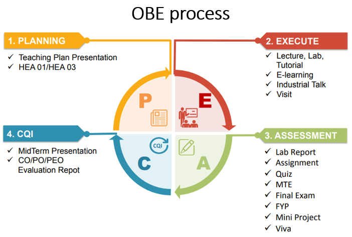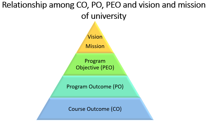 The achievement of students at the end of a course is monitored and analyzed with suitable assessment tools like final examination questions, test questions, quizzes, assignments, laboratory reports, technical reports, viva presentations, project demonstrations, mini projects, etc. This achievement is mentioned as course outcomes (COs), which are mapped to the programme outcomes (POs). The achievement of COs contributes towards the achievement of POs either in the enabling courses or cumulative courses.