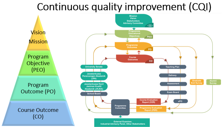 Conduct market survey on the needs of market for the respective programme. Conduct a workshop with the identified stakeholder. Draft the paperwork for the development of a new or modified programme. Application for the new/modify programme approval. Identify the programme outcomes (POs), which is the ability of graduates upon graduation. Currently the programme outcomes for mechanical engineering programme are: